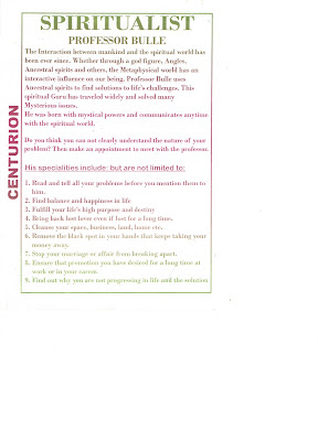 I've been getting a lot of these pamphlets in my mailbox recently. Must say, the claims made are nothing short of miraculous. Makes western medicine, for which I have personally not a very high regard, almost primitive by comparison. The vast majority of South Africans rely on 'Sangomas' or Herbalists as they are also known for their primary health care.